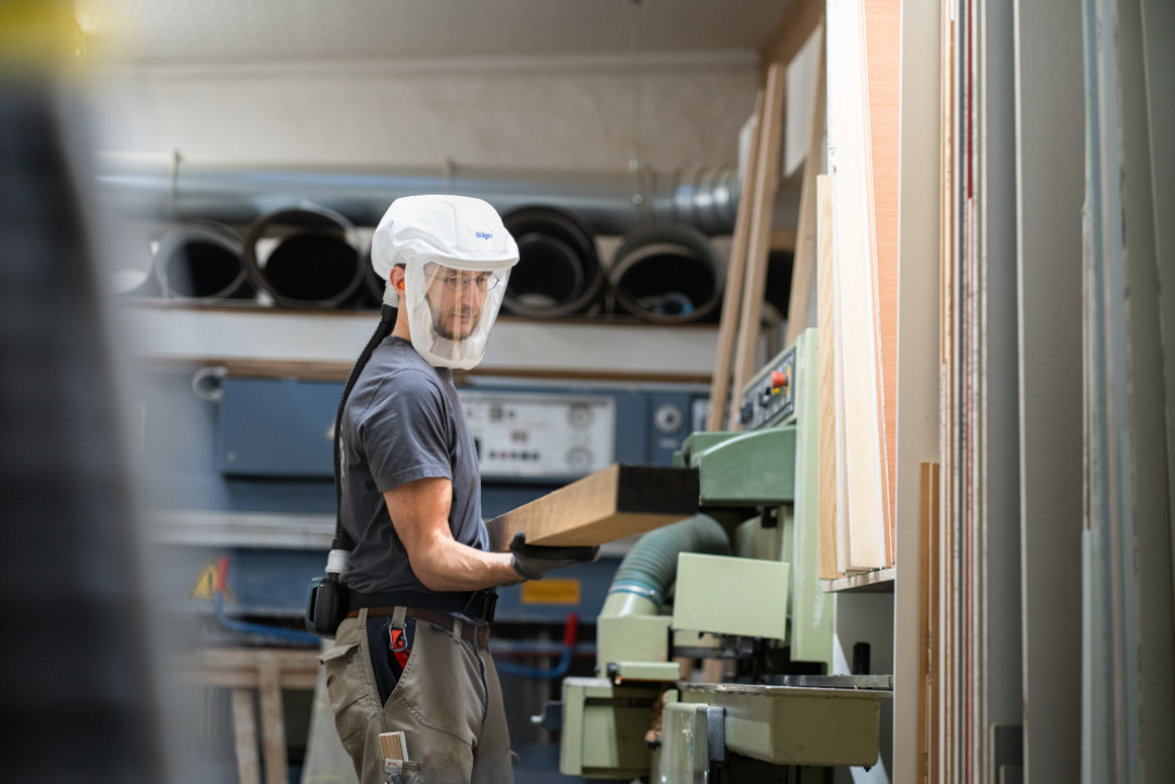 Ein Gebläsefiltergerät aus der X-plore 8000 Reihe bietet im Handwerk viele Vorteile gegenüber klassischen Atemschutzmasken. Es entsteht so gut wie kein Atemwiderstand, weil das Gerät die gefilterte Luft aktiv in die Haube oder den Helm bläst – das Arbeiten wird dadurch viel angenehmer, gerade bei körperlicher Anstrengung oder längeren Einsätzen. Ein weiterer Vorteil: Für Gebläsefiltergeräte ist in der Regel keine arbeitsmedizinische G26-Untersuchung vorgeschrieben, wie sie bei eng anliegenden Masken nötig ist. Das spart Zeit und zusätzliche Untersuchungen.