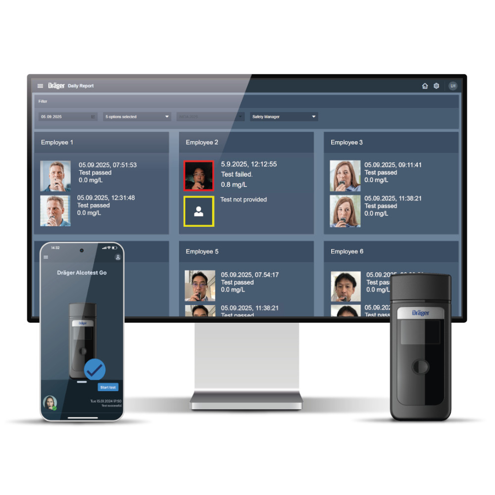 Mit Dräger Alcotest Go erhalten Sie eine rechtssichere, komfortable und effiziente Gesamtlösung zur Umsetzung aller Anforderungen rund um die Atemalkoholüberwachung im betrieblichen Umfeld.
