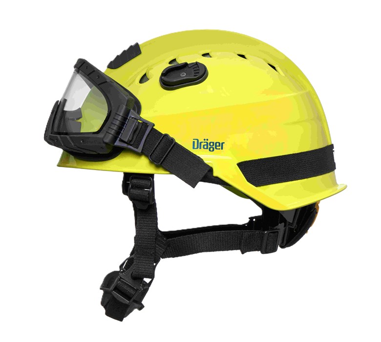 Die Produktkonfiguration basiert auf dem Dräger HPS 3500 Premium als hochwertiger Lackvariante und der Dräger X-pect® 4800 HPS als Vollsichtbrillenoption aus dem Zubehörprogramm. Das Set bildet eine geschlossene Systemlösung für Kopf- und Sichtschutz.