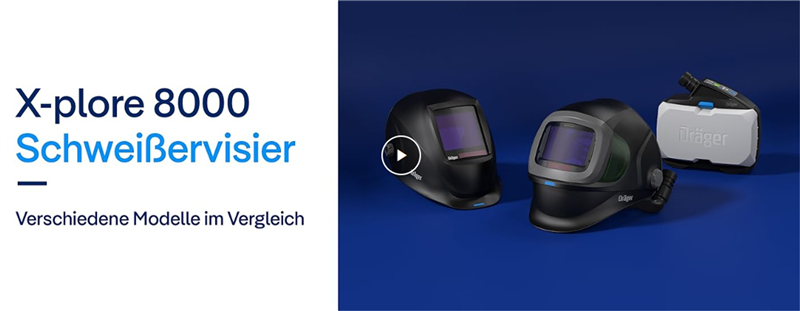 Die Dräger X-plore 8000 Schweißervisiere bieten zuverlässigen Schutz für Augen und Gesicht. Als integraler Bestandteil unseres Gebläsefiltersystems Dräger X-plore 8000 ermöglichen sie zudem sicheres Atmen während Ihrer Schweißarbeiten.