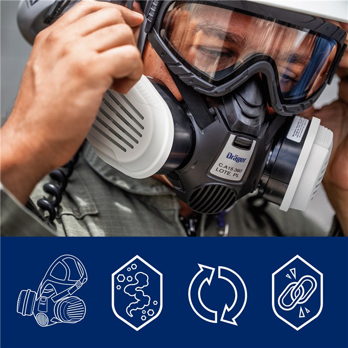 Der Dräger X-plore Bajonett Kombinationsfilter ist für die Vollmaske Dräger X-plore 5500 geeignet. Der Kombinationsfilter hat einen Gasfilter mit der Schutzstufe A2B2E2K2 Hg und einen Partikelfilter mit der Schutzstufe P3.