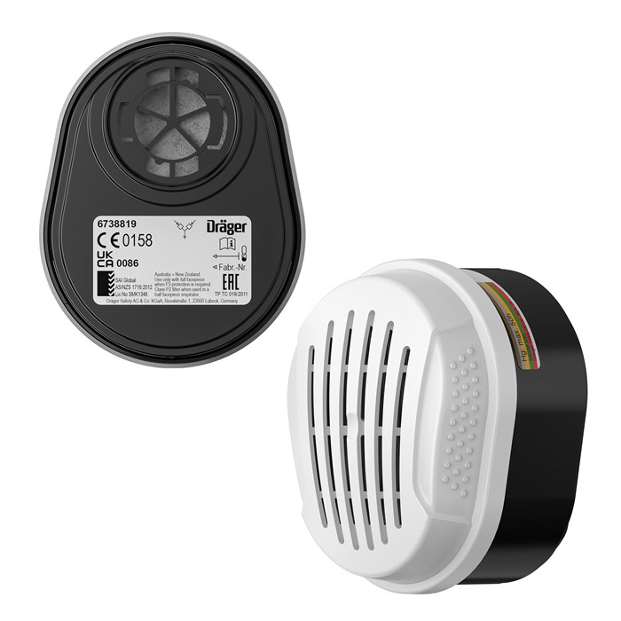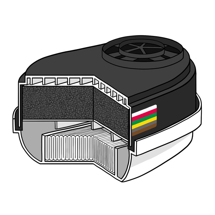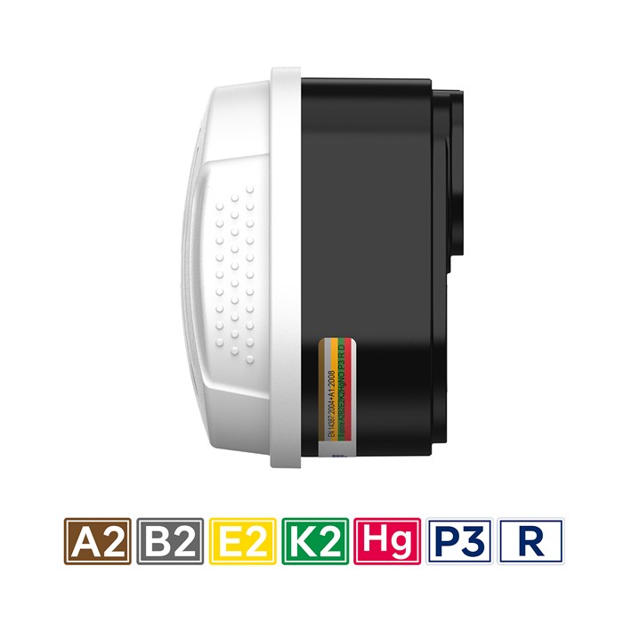 - Gasfilter: A2B2E2K2 Hg, Partikelfilter P3